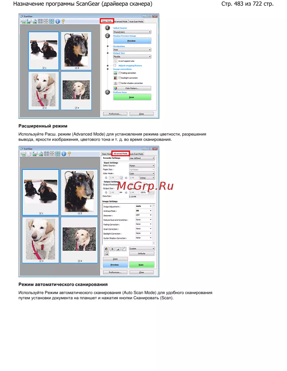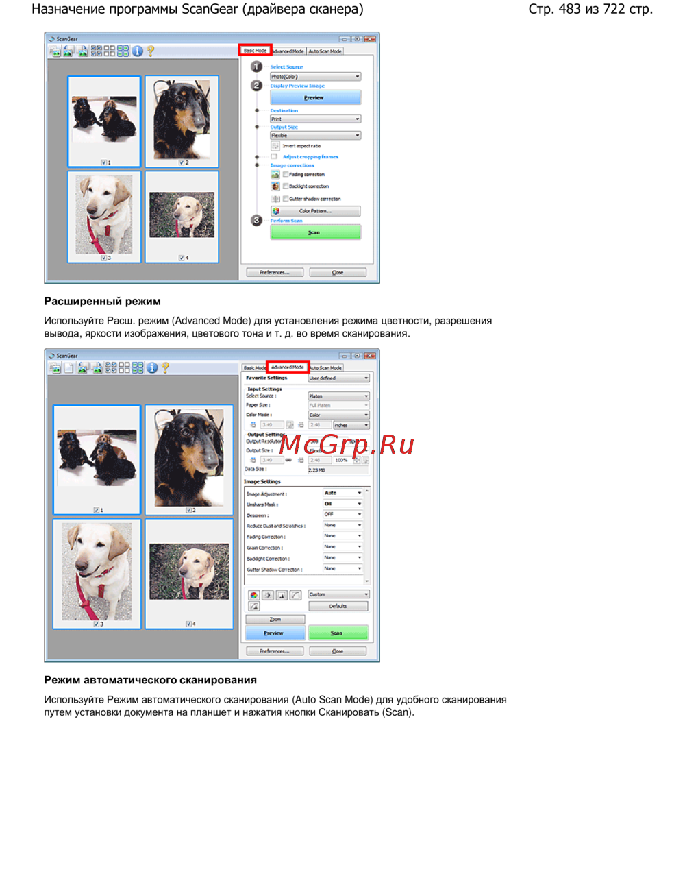 Стр. 483 из 722 стр.Назначение программы ScanGear (драйвера сканера)