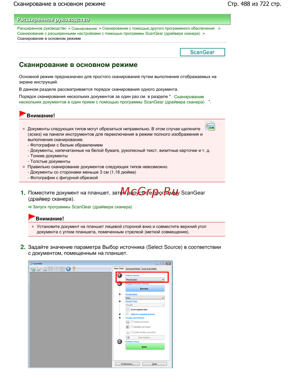 Стр. 488 из 722 стр.Сканирование в основном режиме