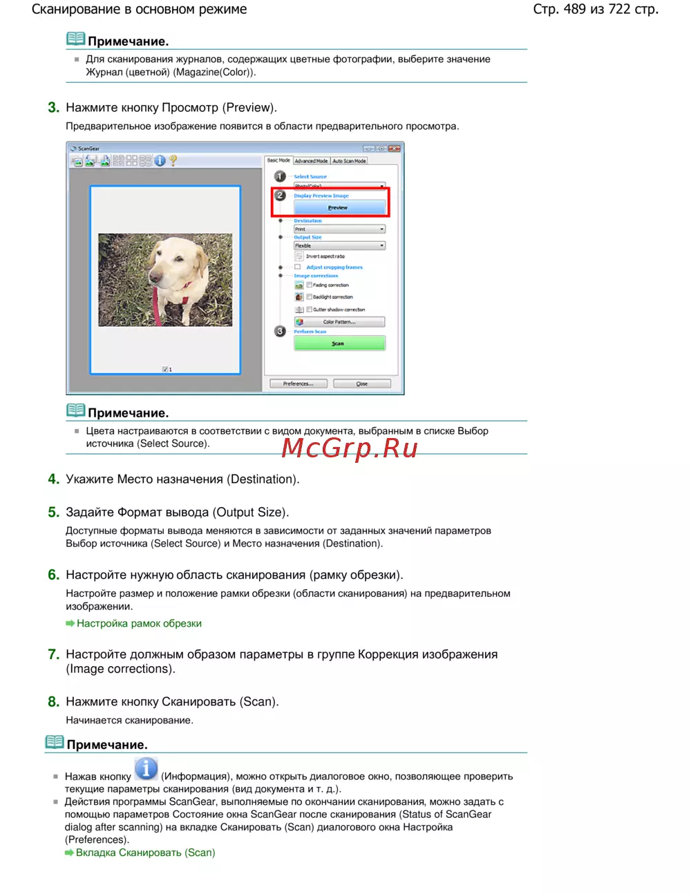 Стр. 489 из 722 стр.Сканирование в основном режиме