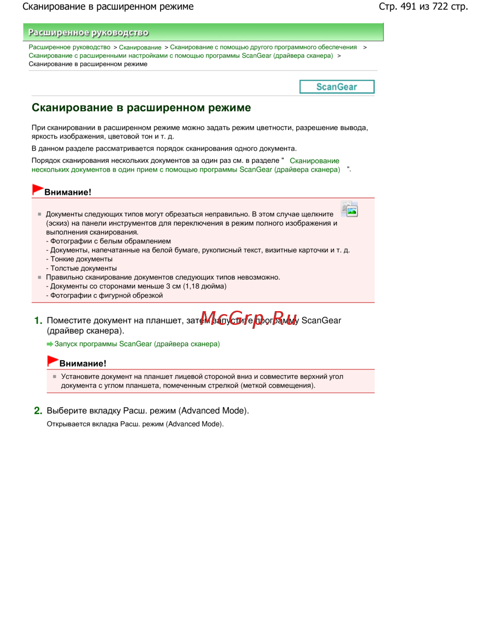 Стр. 491 из 722 стр.Сканирование в расширенном режиме