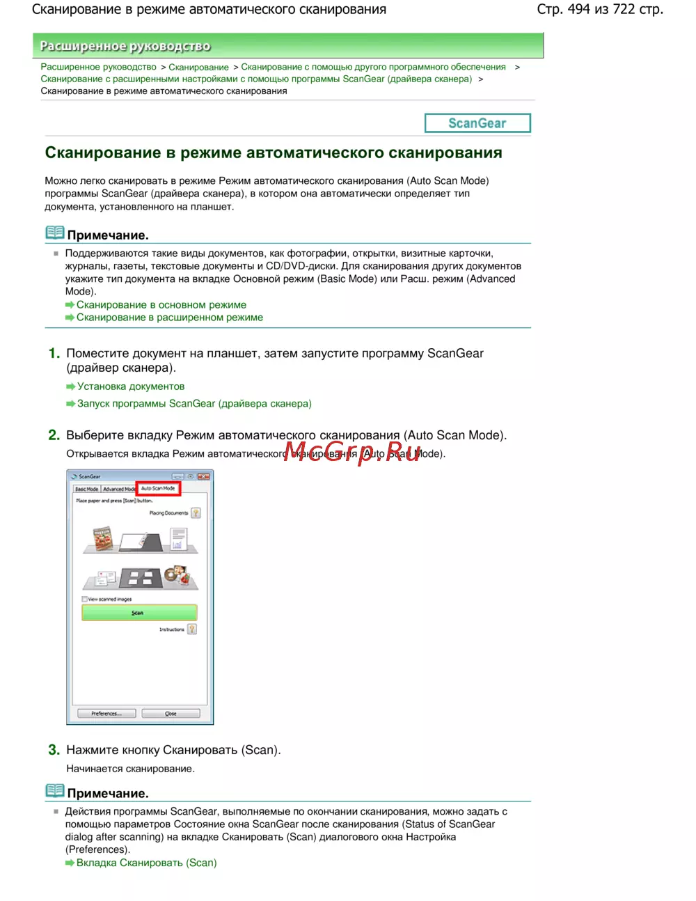 Стр. 494 из 722 стр.Сканирование в режиме автоматического сканирования