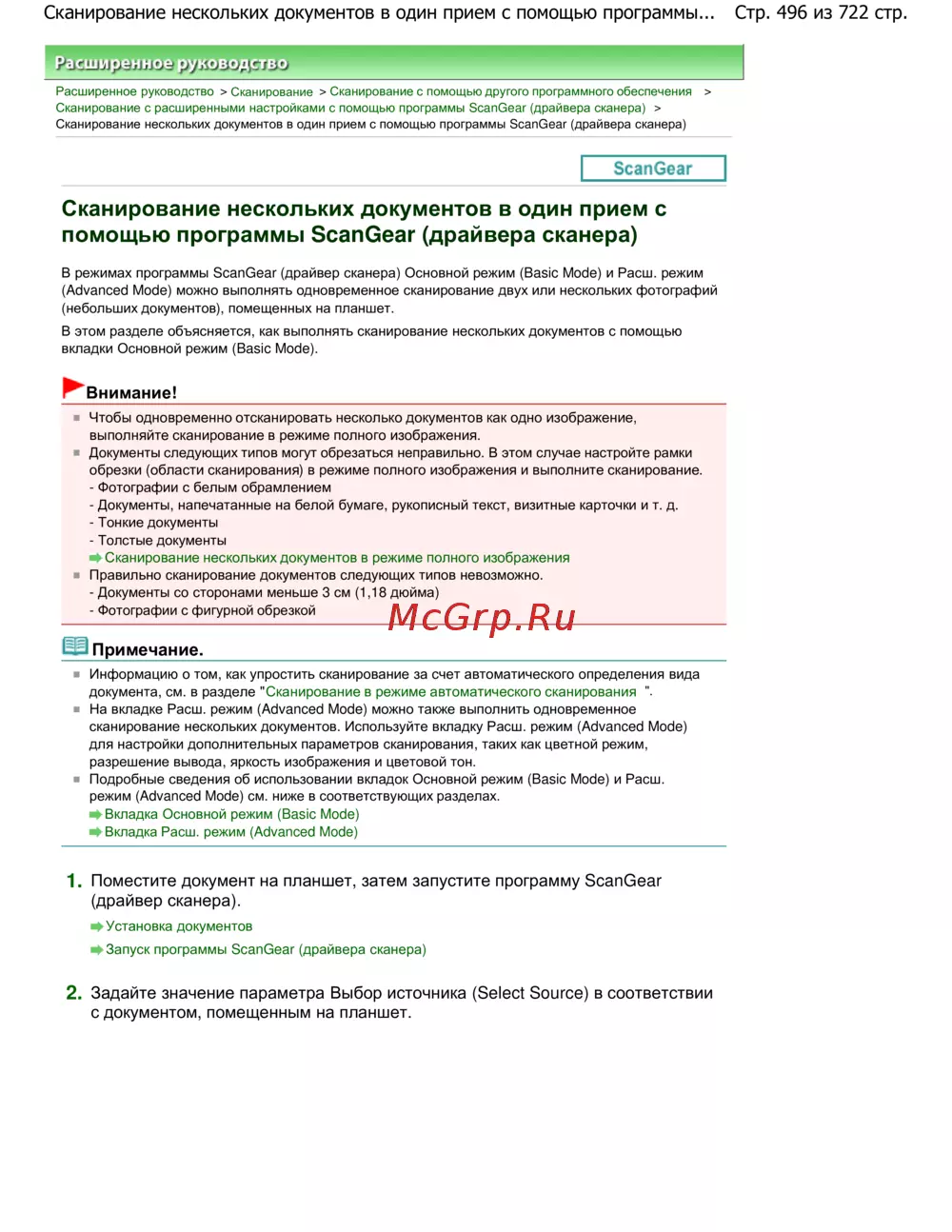 Стр. 496 из 722 стр.Сканирование нескольких документов в один прием с помощью программы...