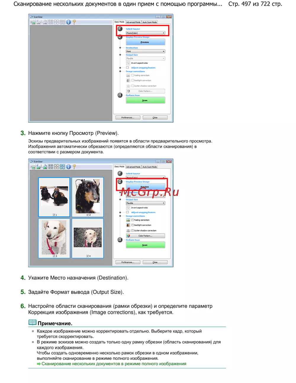 Стр. 497 из 722 стр.Сканирование нескольких документов в один прием с помощью программы...