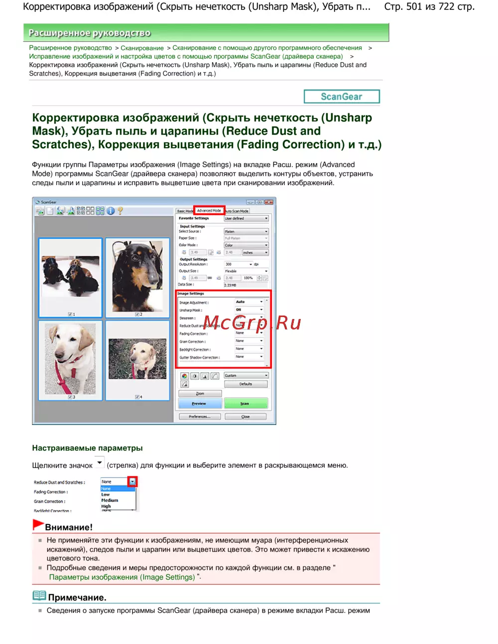 Исправление изображений и настройка цветов с помощью программы ScanGear (драйвера сканера)