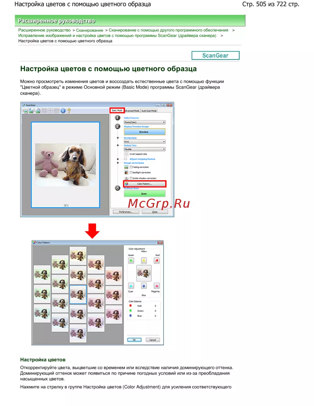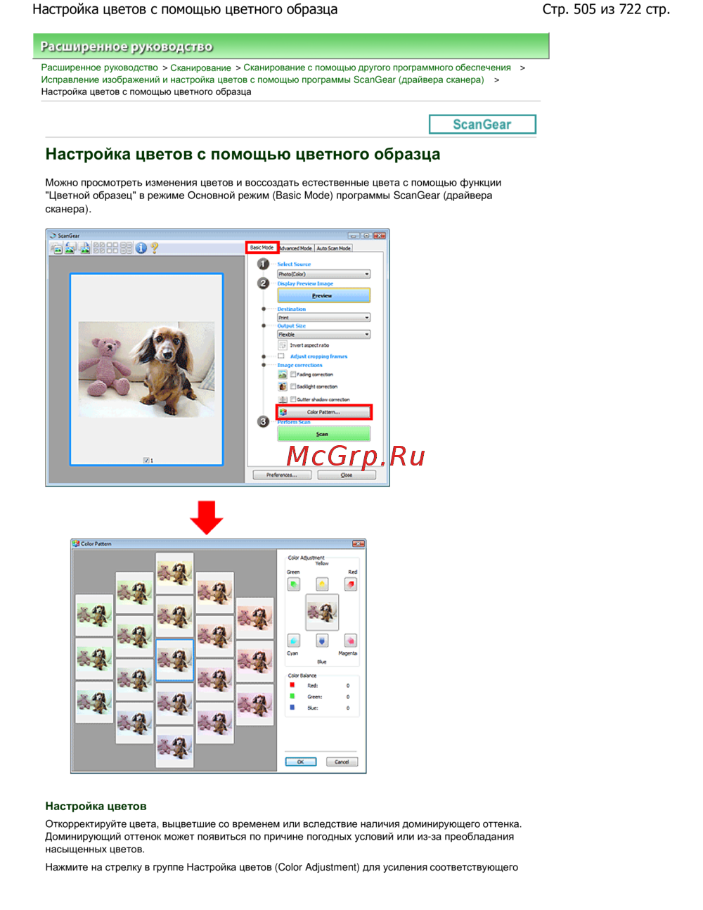 Стр. 505 из 722 стр.Настройка цветов с помощью цветного образца