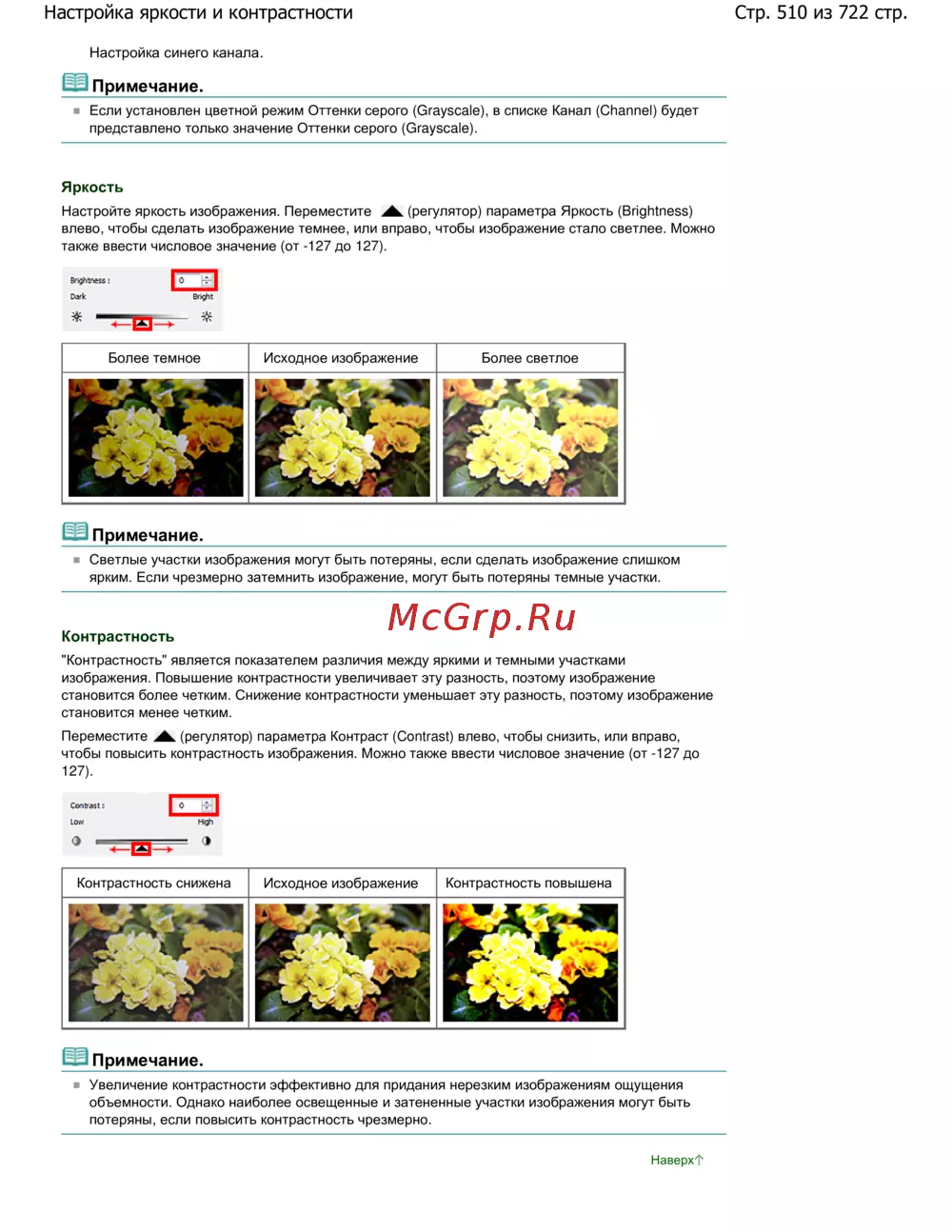 Стр. 510 из 722 стр.Настройка яркости и контрастности