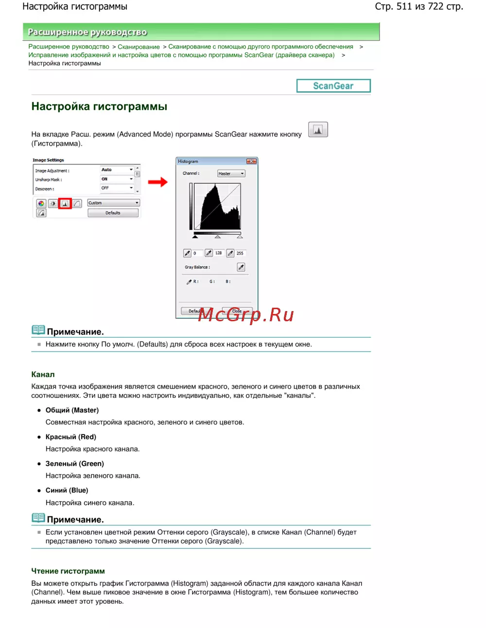 Canon Pixma MP 272 — руководство по настройке гистограммы для сканирования изображений [511/722]