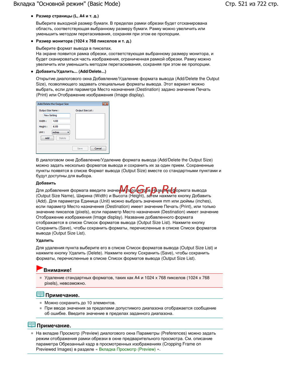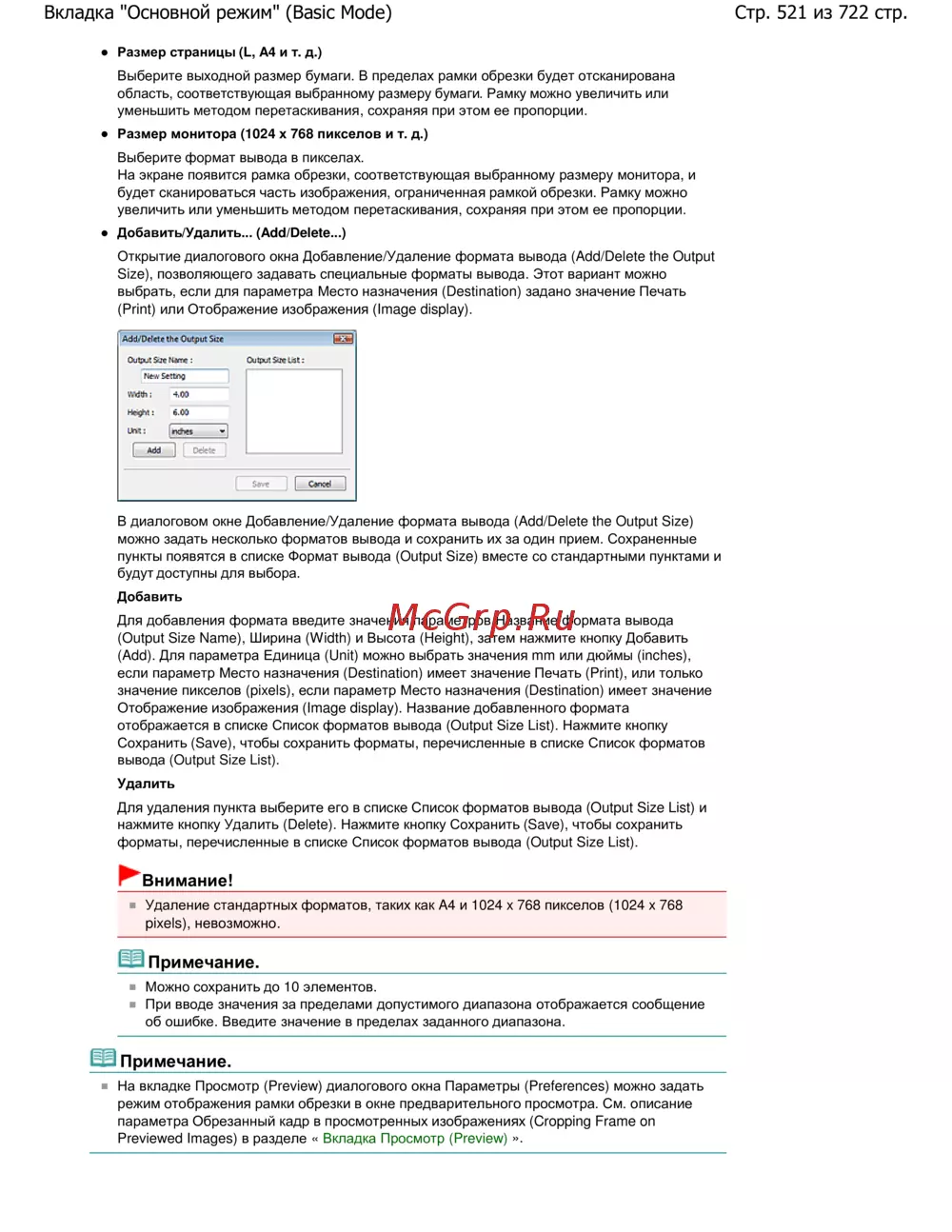 Canon Pixma MP 272 — выбор и настройка форматов вывода для печати и отображения [521/722]