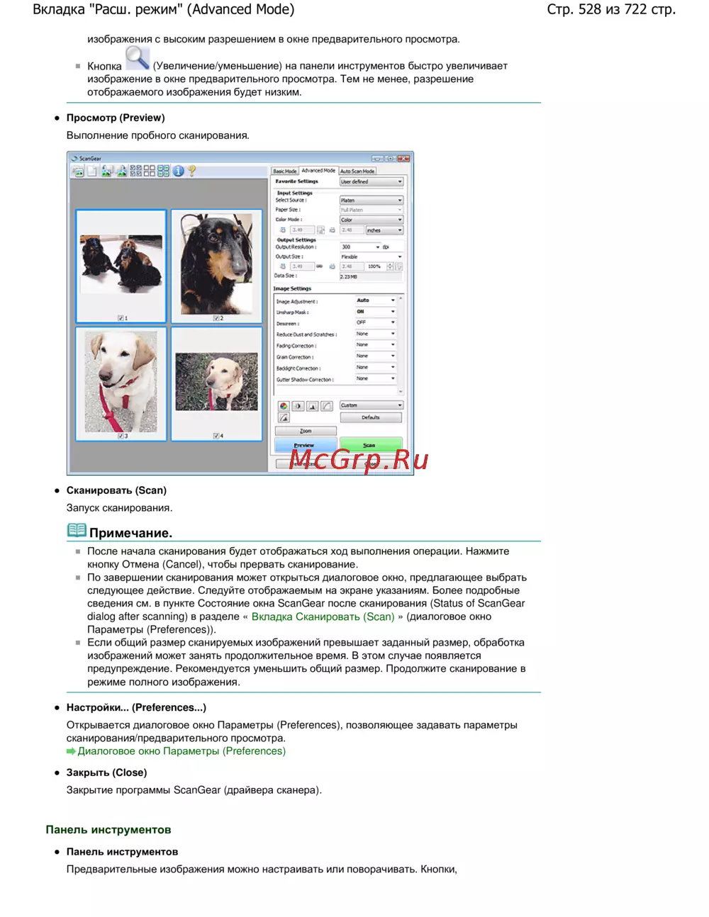 Canon Pixma MP 272 — настройки и управление сканером ScanGear: Параметры, предварительный просмотр и сканирование [528/722]