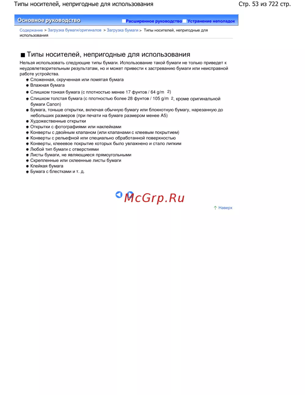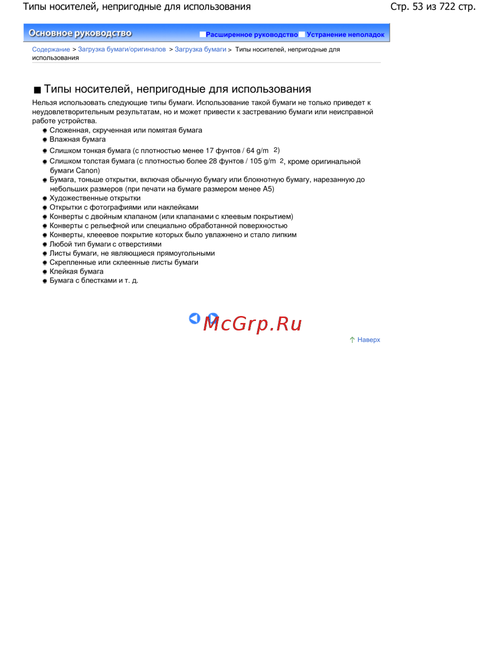 Canon Pixma MP 272 — непригодные типы бумаги: типы носителей, которые нельзя использовать в принтере [53/722]