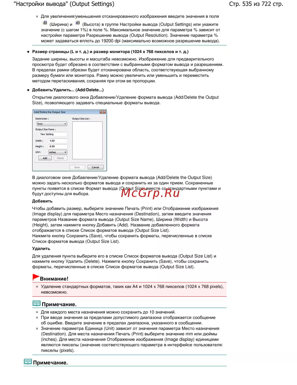 Canon Pixma MP 272 — настройки вывода изображений: масштабирование, разрешение, форматы [535/722]
