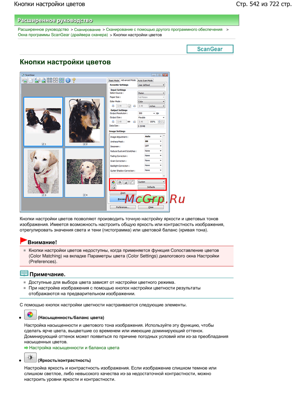 Canon Pixma MP 272 — руководство по настройке цветов и яркости в сканировании [542/722]