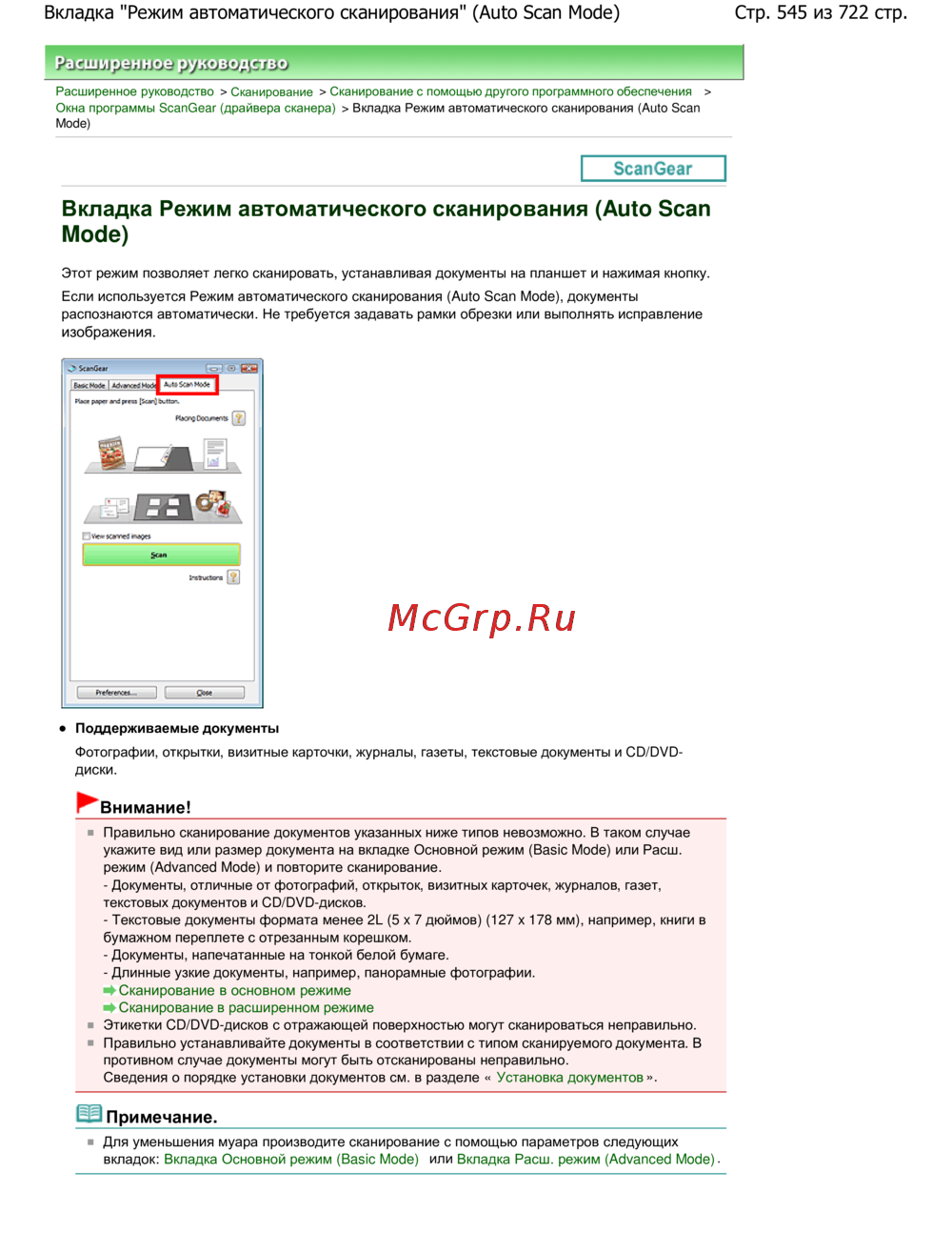Стр. 545 из 722 стр.Вкладка "Режим автоматического сканирования" (Auto Scan Mode)