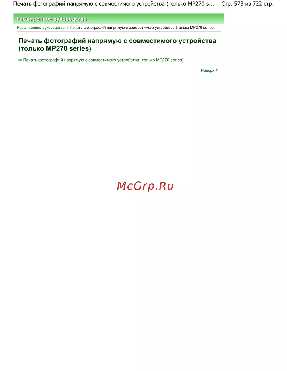 Стр. 573 из 722 стр.Печать фотографий напрямую с совместимого устройства (только MP270 s...