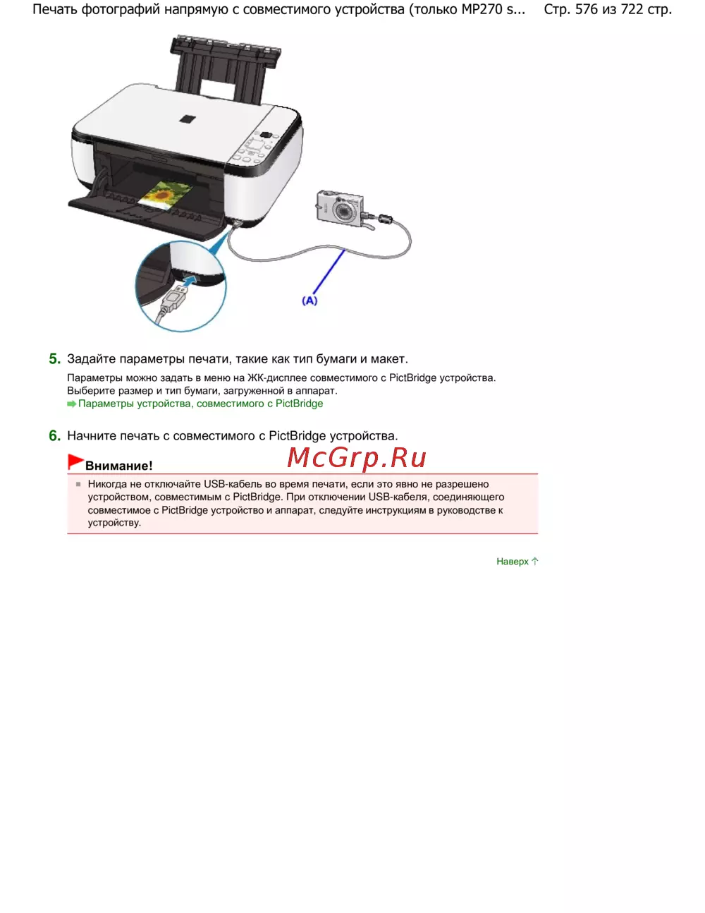 Стр. 576 из 722 стр.Печать фотографий напрямую с совместимого устройства (только MP270 s...
