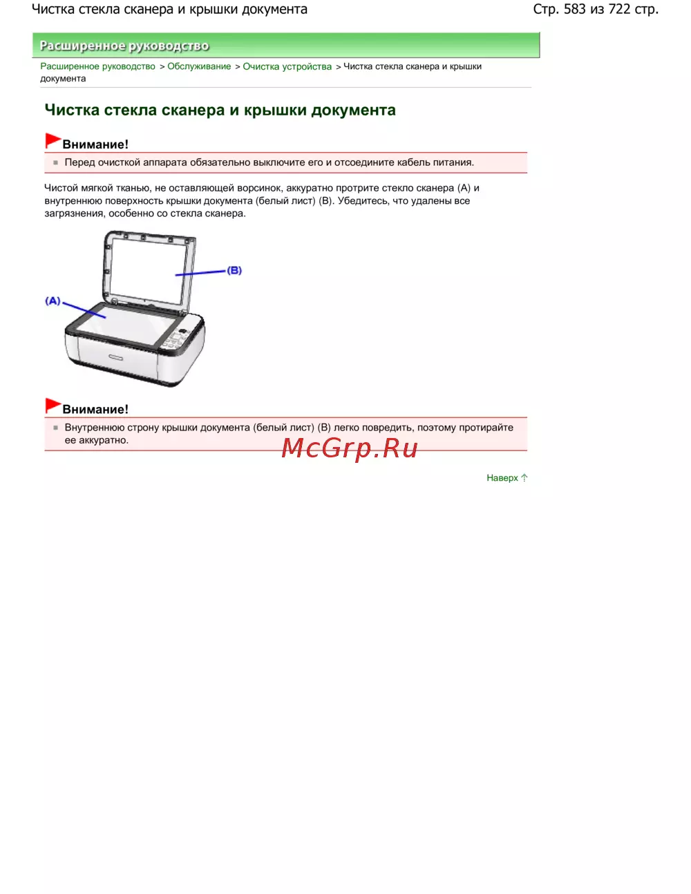 Стр. 583 из 722 стр.Чистка стекла сканера и крышки документа