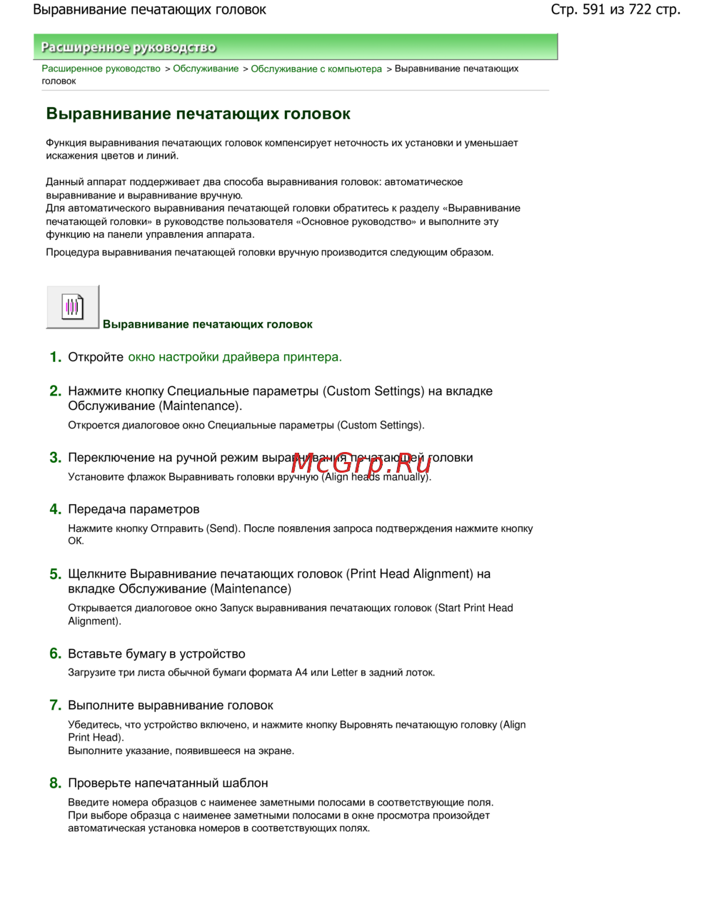 Стр. 591 из 722 стр.Выравнивание печатающих головок