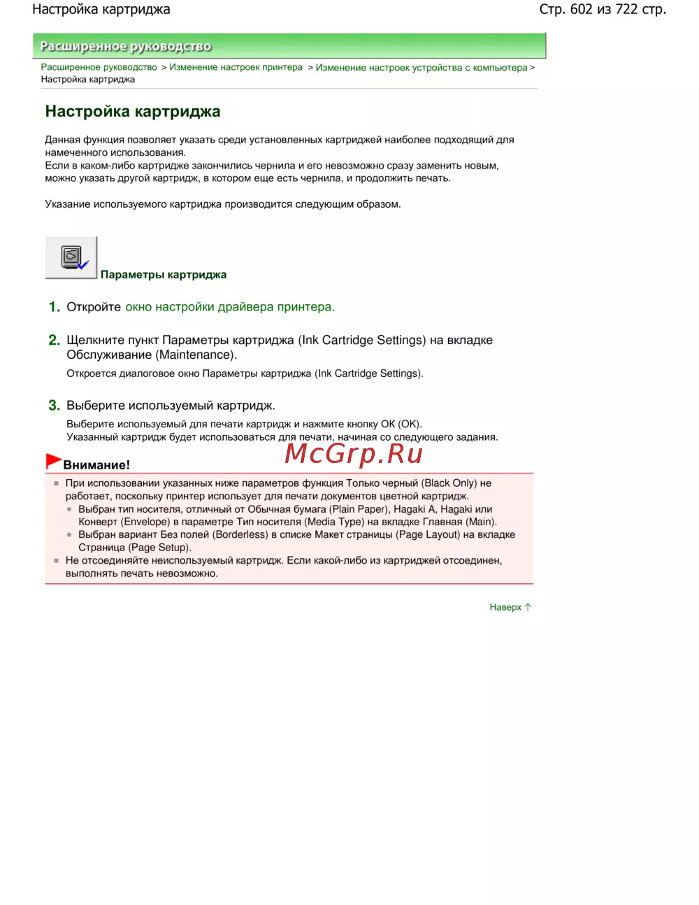 Стр. 602 из 722 стр.Настройка картриджа