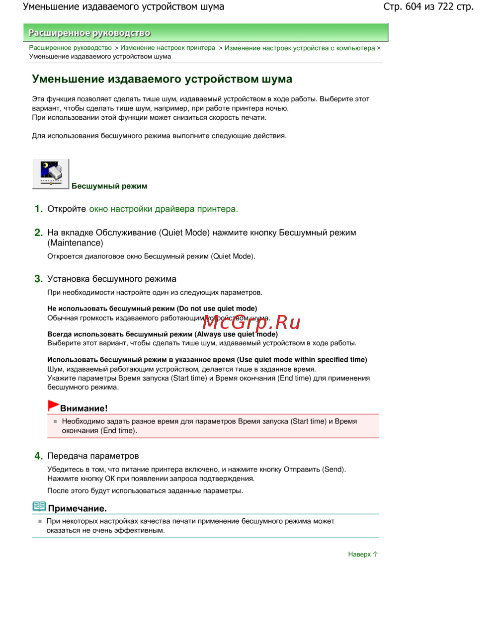 Canon Pixma MP 272 — настройка бесшумного режима принтера: инструкция по снижению шума [604/722]