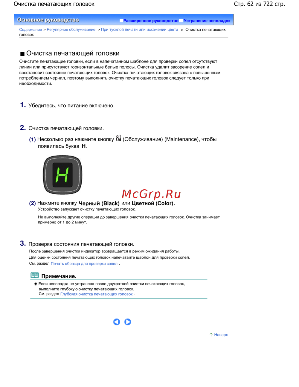 Стр. 62 из 722 стр.Очистка печатающих головок