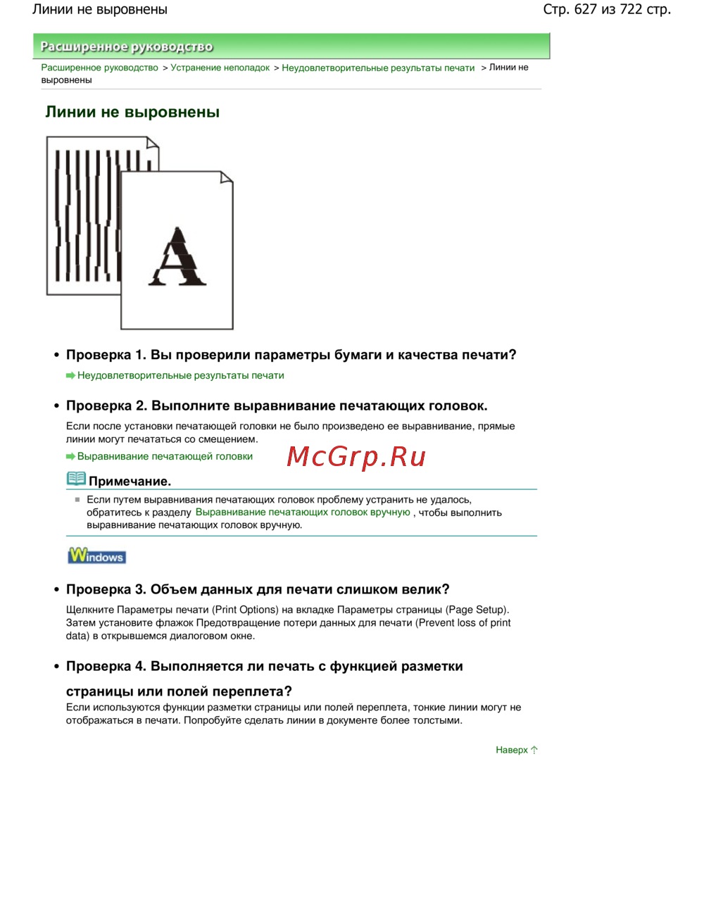 Canon Pixma MP 272 — устранение неполадок печати: не выровненные линии и способы исправления [627/722]