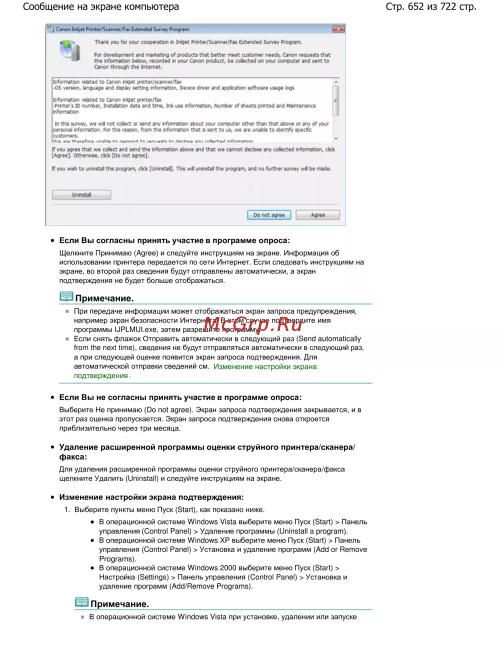 Canon Pixma MP 272 — участие в программе опроса и удаление программного обеспечения [652/722]