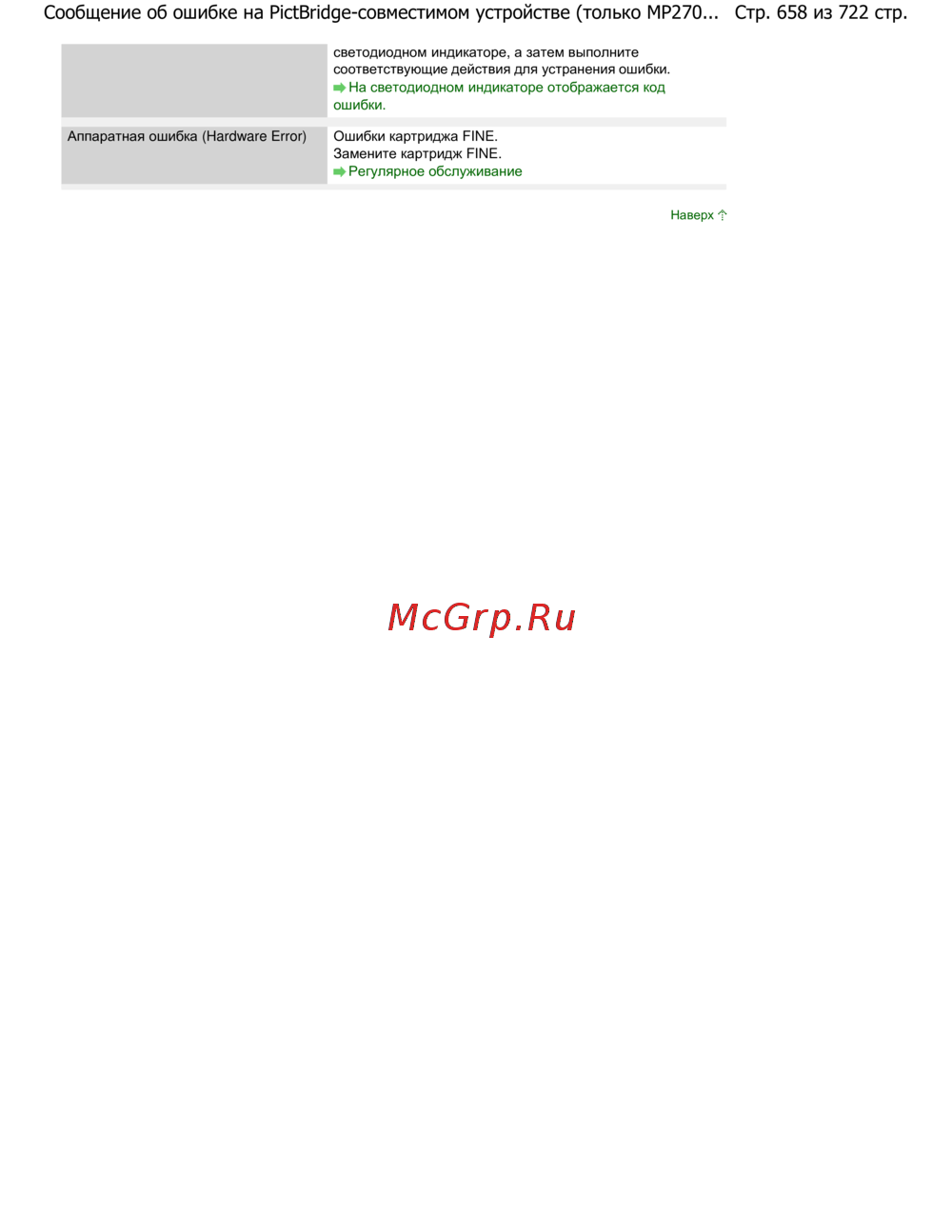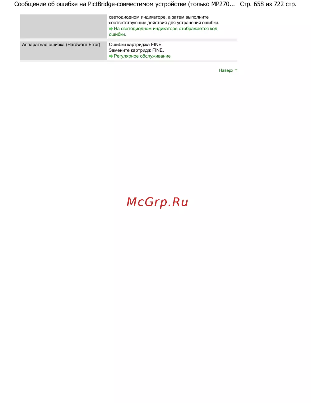 Стр. 658 из 722 стр.Сообщение об ошибке на PictBridge-совместимом устройстве (только MP270...