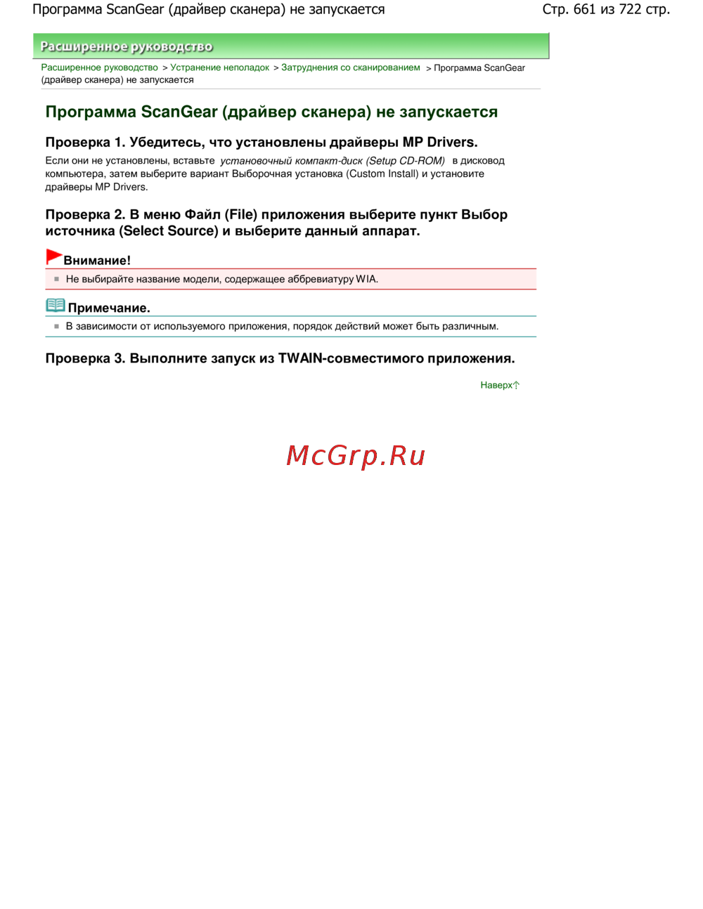 Стр. 661 из 722 стр.Программа ScanGear (драйвер сканера) не запускается