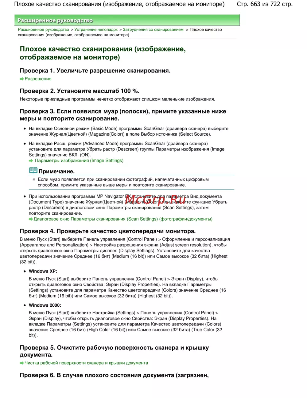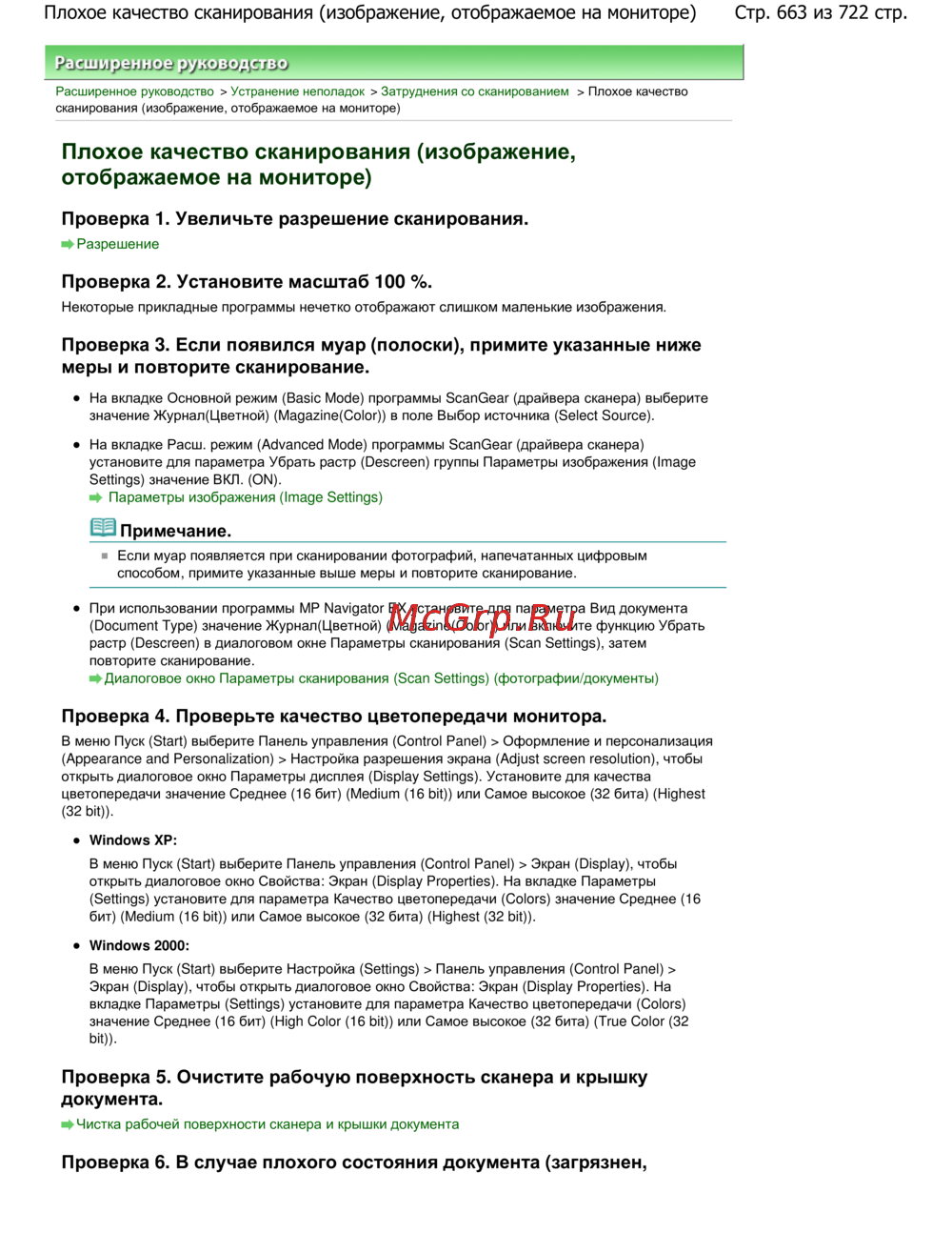 Стр. 663 из 722 стр.Плохое качество сканирования (изображение, отображаемое на мониторе)