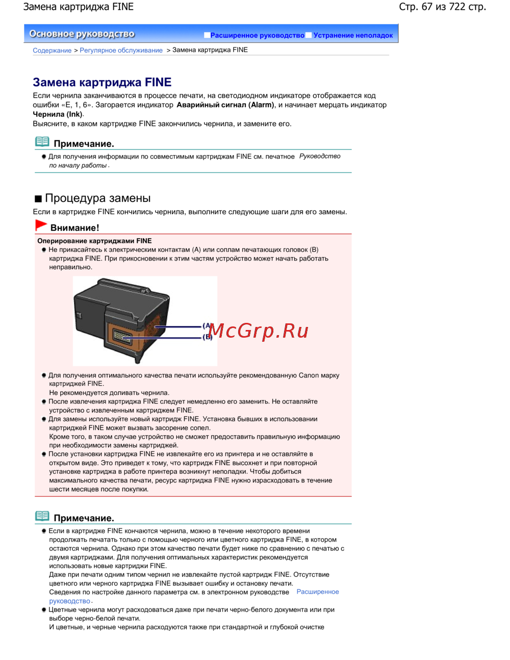 Стр. 67 из 722 стр.Замена картриджа FINE