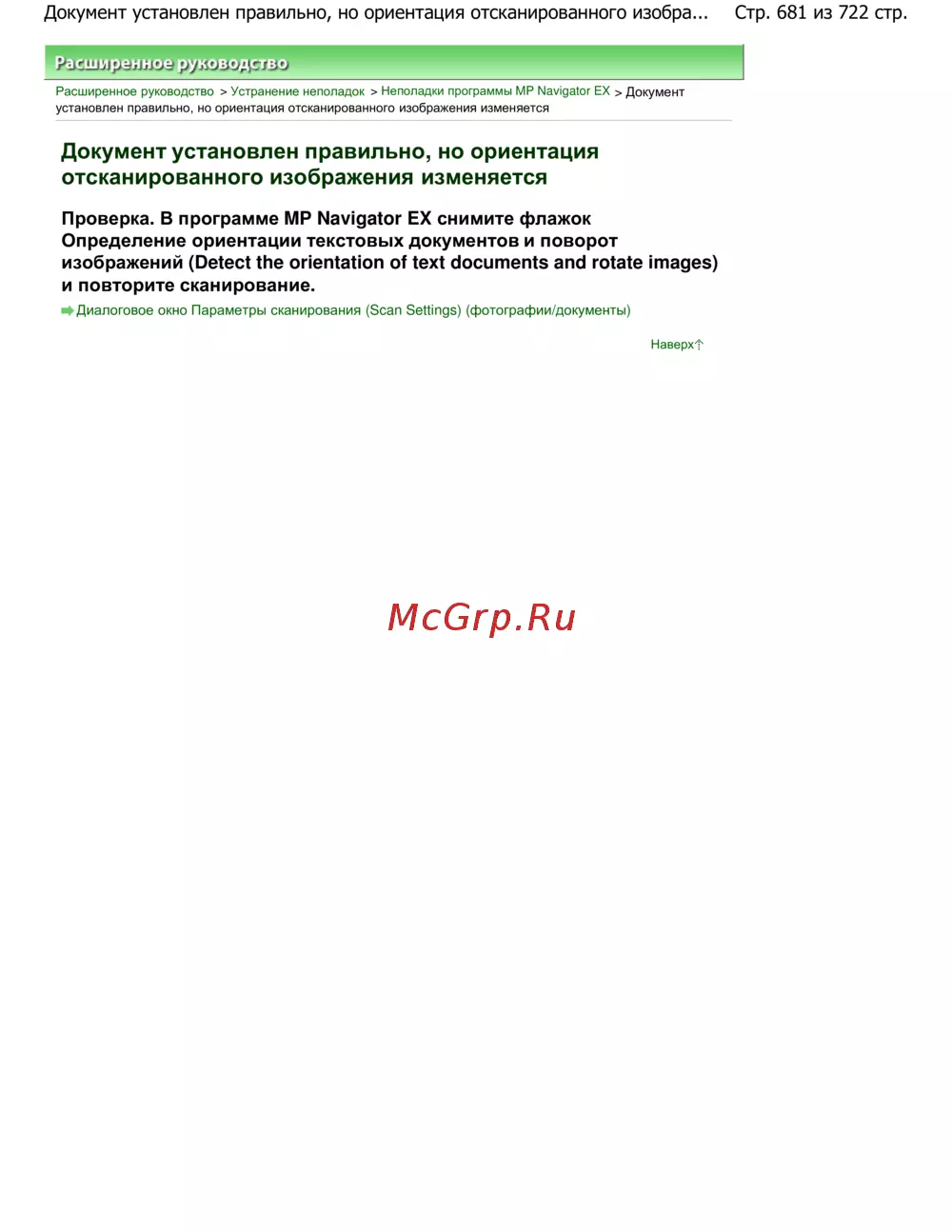Встречали ошибку с ориентацией сканированных изображений в MP Navigator EX? Простое решение: сбросьте параметры и повторите сканирование.