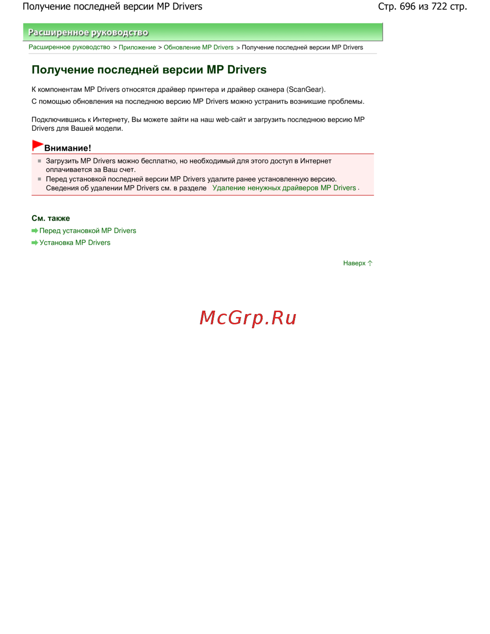 Стр. 696 из 722 стр.Получение последней версии MP Drivers
