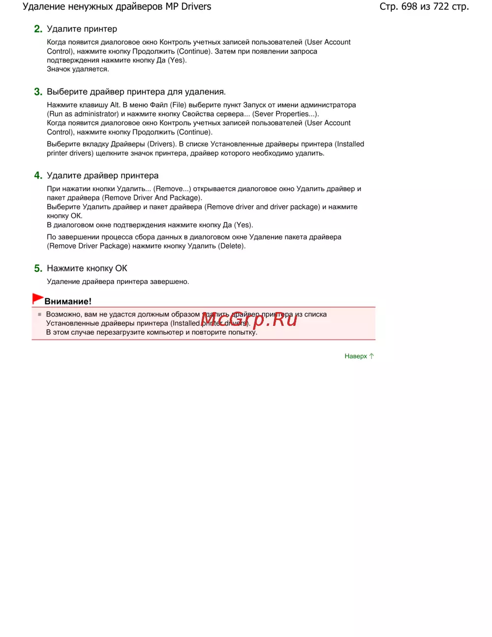 Стр. 698 из 722 стр.Удаление ненужных драйверов MP Drivers