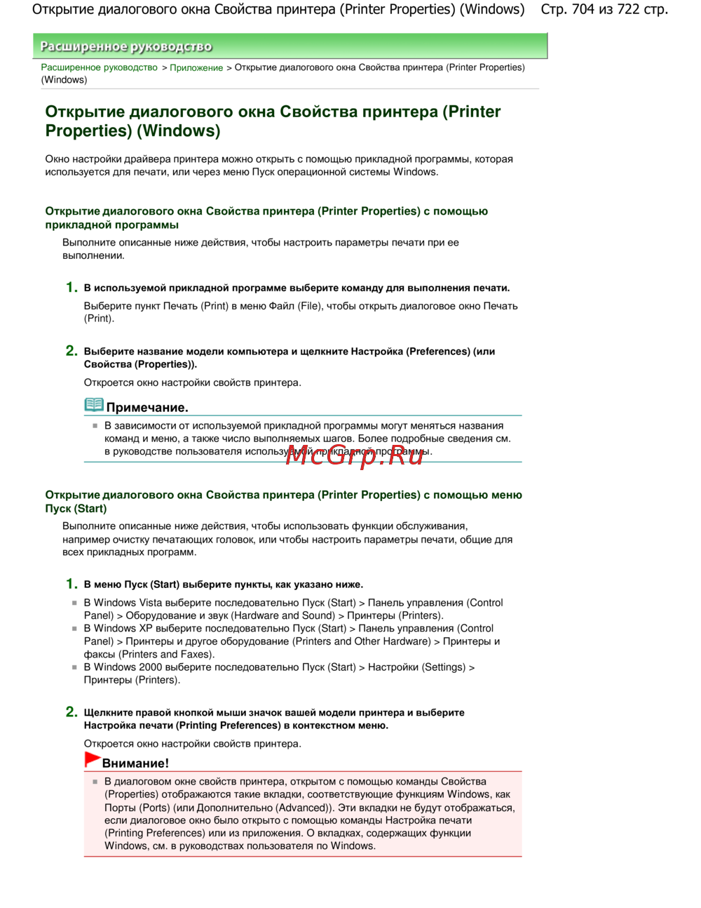 - Стр 704 из 722 стр открытие диалогового окна свойства принтера printer properties windows p.704