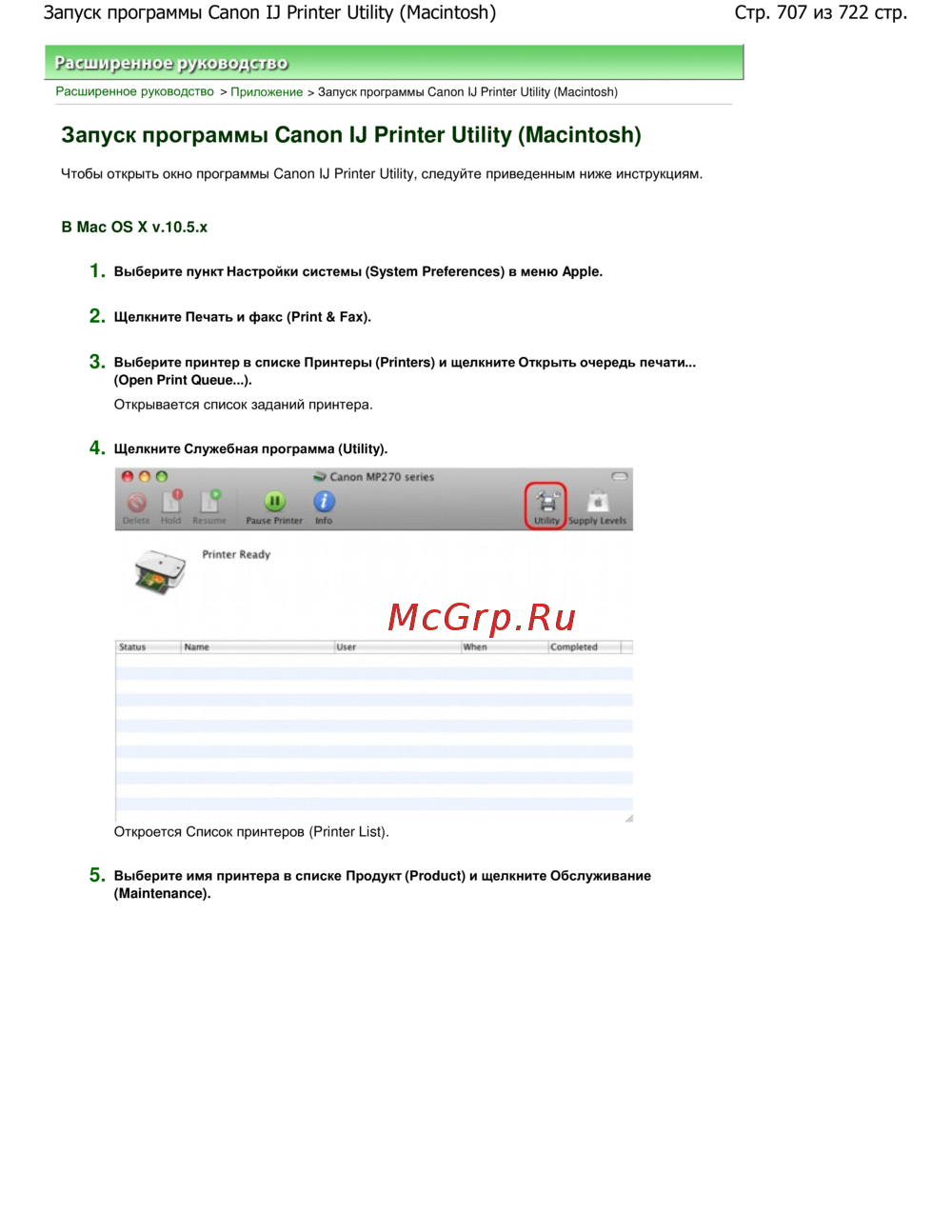 - Запуск программы canon ij printer utility macintosh p.707