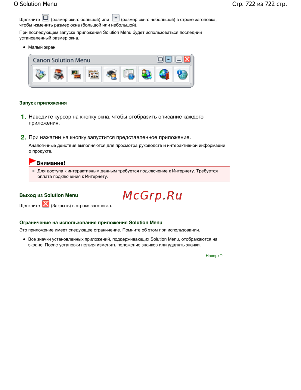 Canon Pixma MP 272 — как изменить размер окна и использовать приложение Solution Menu [722/722]