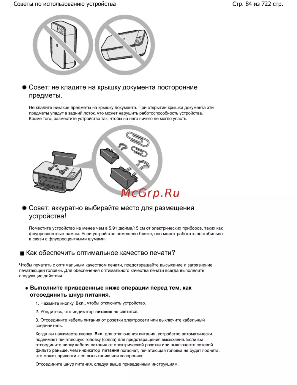 Canon Pixma MP 272 — советы по правильному использованию печатающих устройств [84/722]