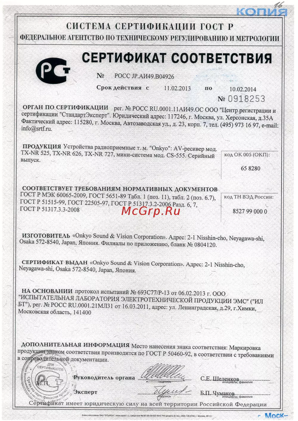 Onkyo TX-NR636 BlackСертификат -