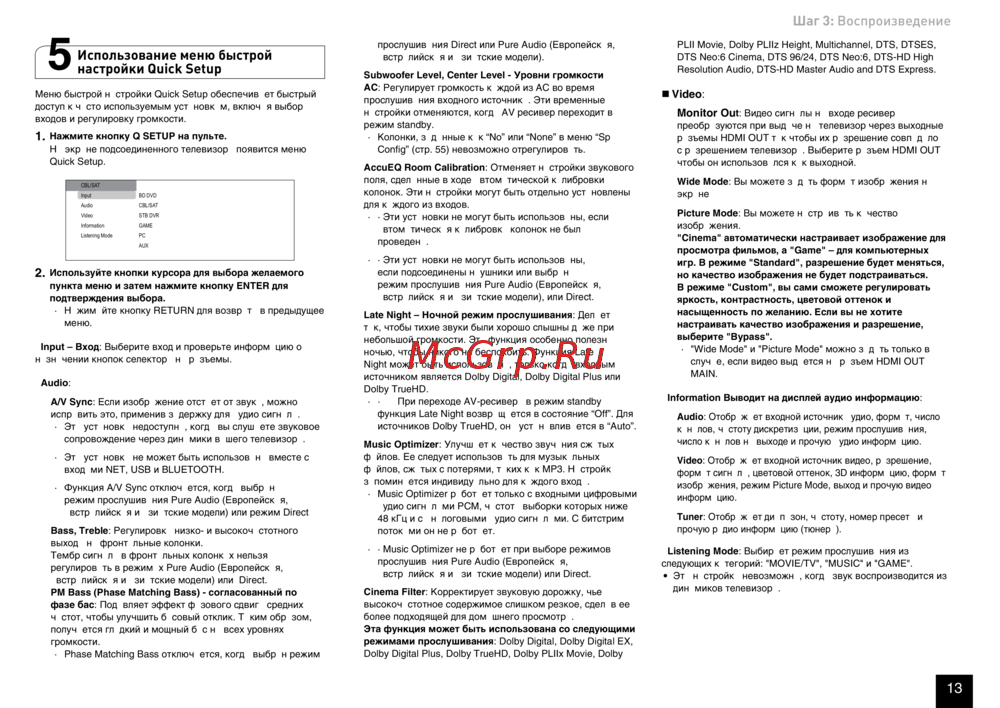 Onkyo TX-NR636 Black — настройка аудио: быстрое меню и регулировка звука [13/24]