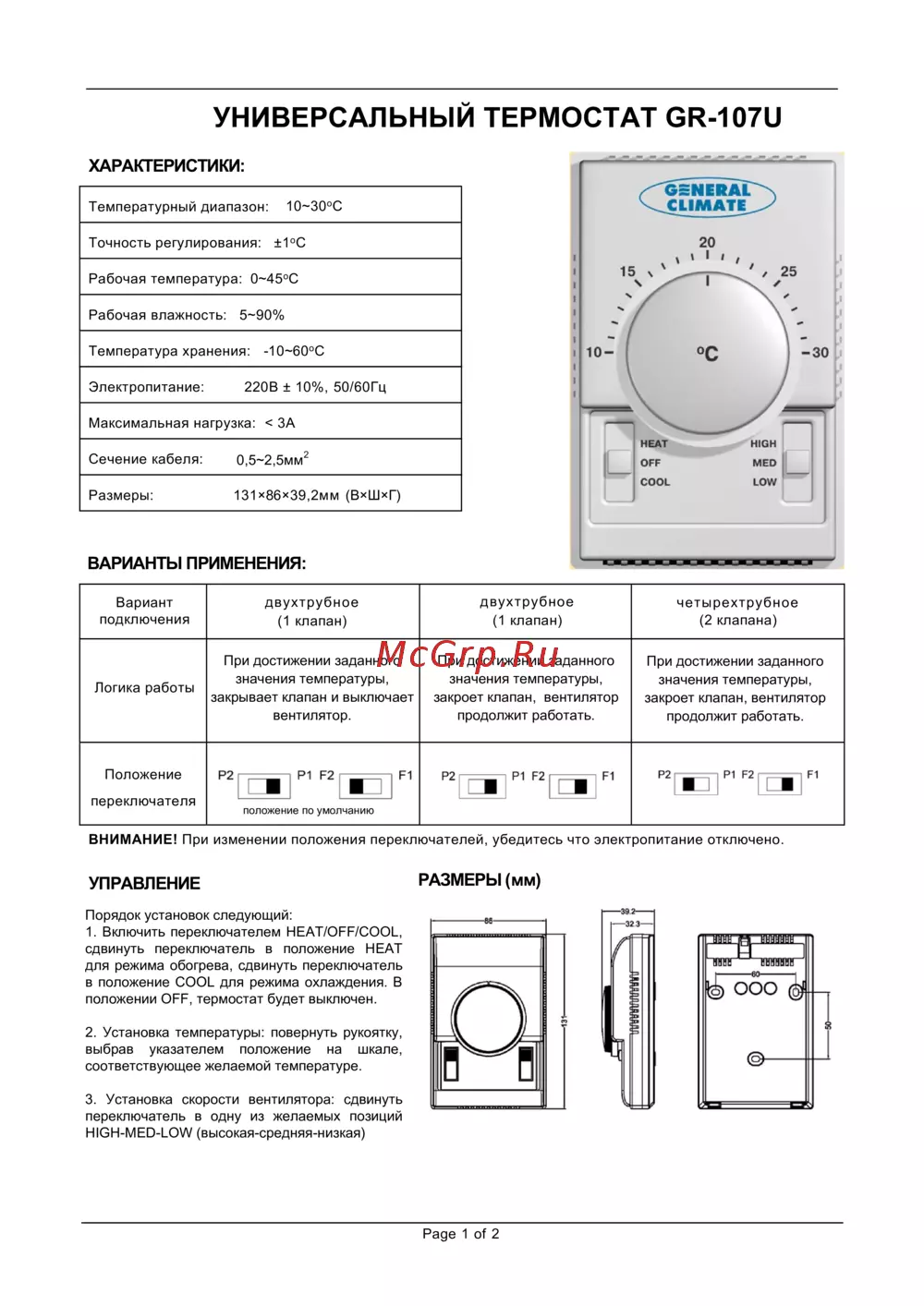 УНИВЕРСАЛЬНЫЙ ТЕРМОСТАТ GR-107U