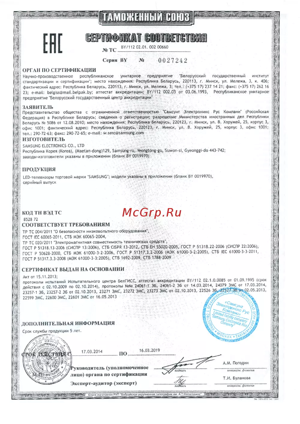 Samsung UE40H6203AK — организационные данные предприятия [1/2]
