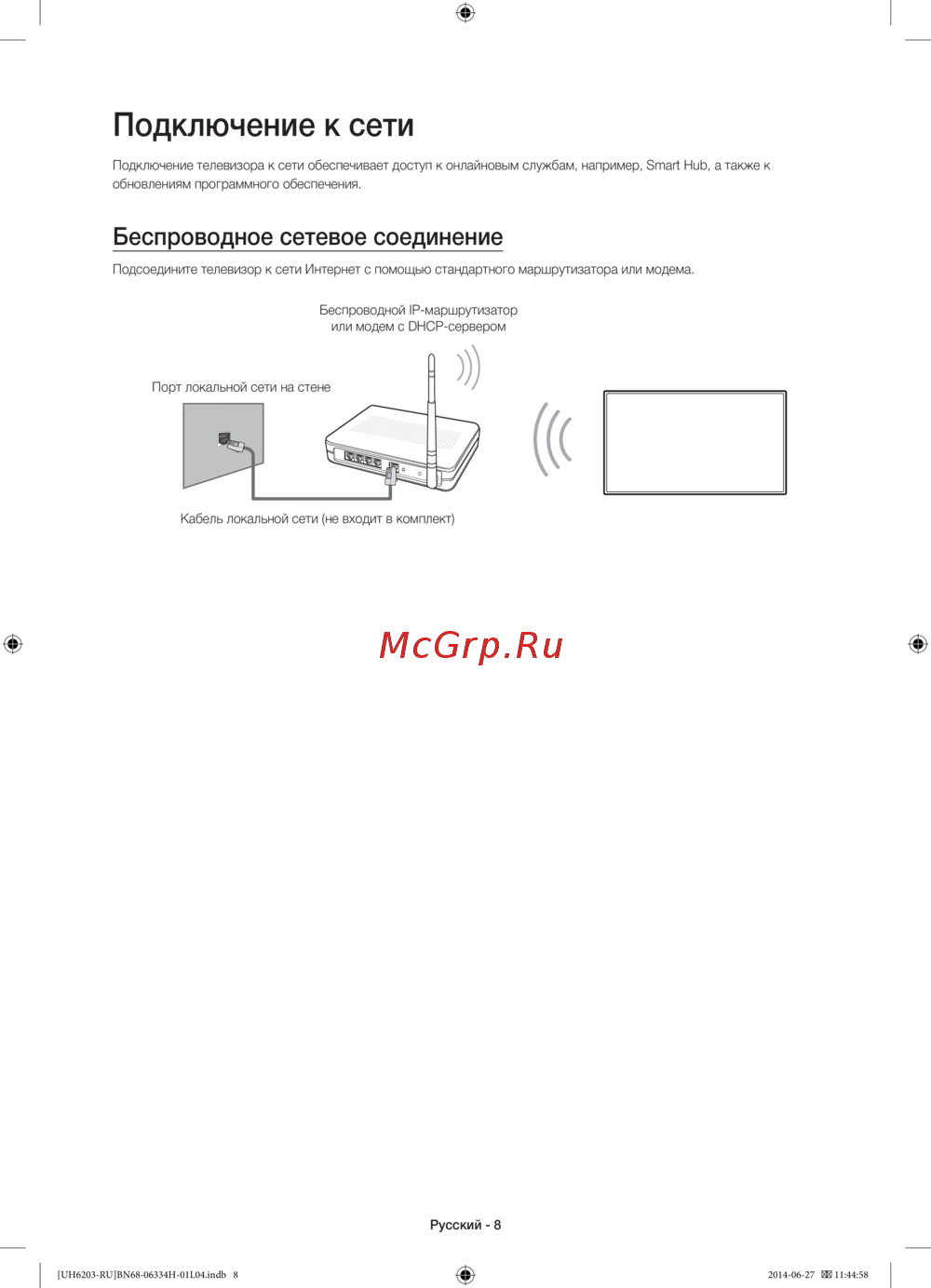 Подключение телевизора к сети обеспечивает доступ к онлайновым службам, например, Smart Hub, а также к