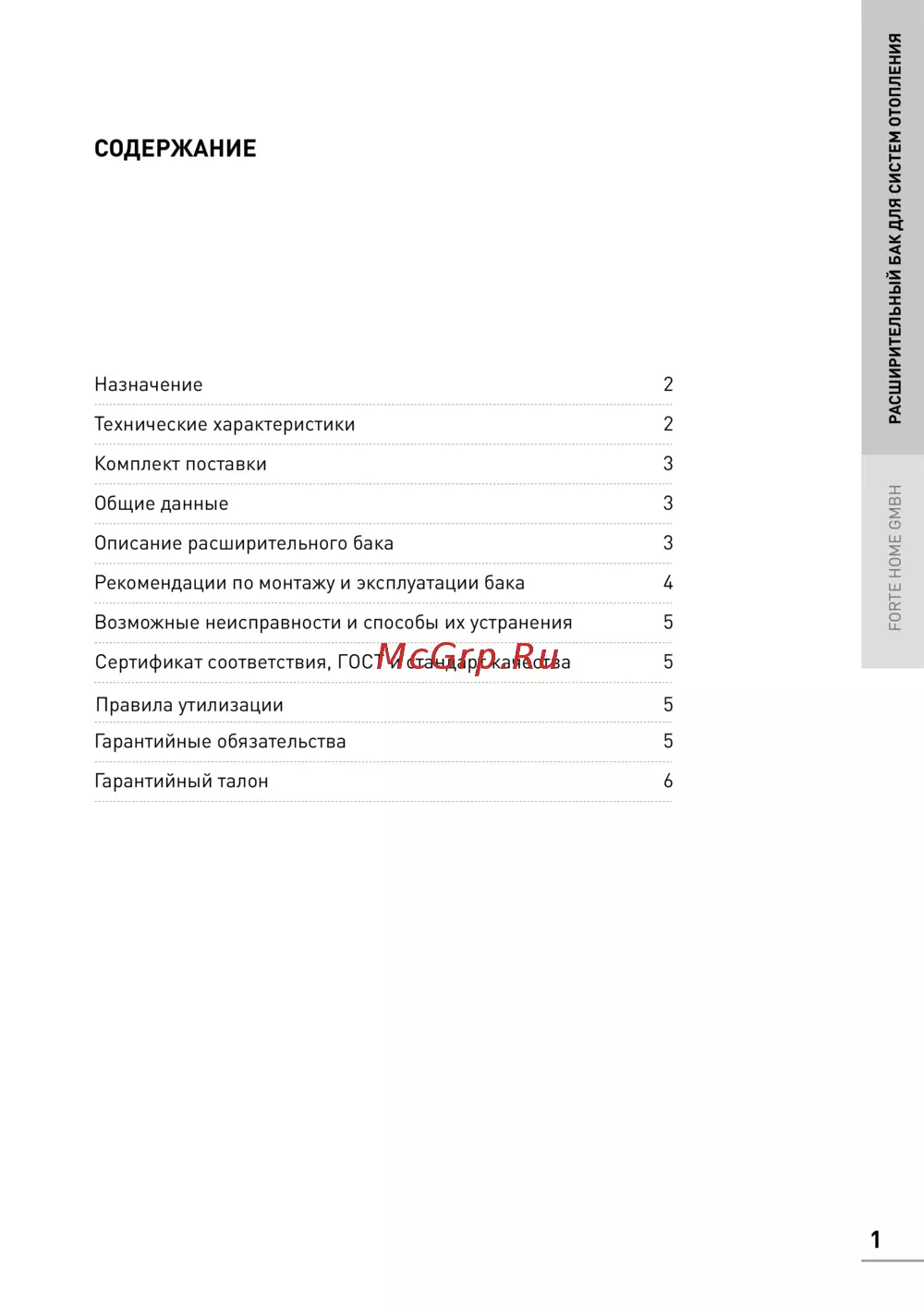 РАСШИРИТЕЛЬНЫЙ БАК ДЛЯ СИСТЕМ ОТОПЛЕНИЯFORTE HOME GMBH