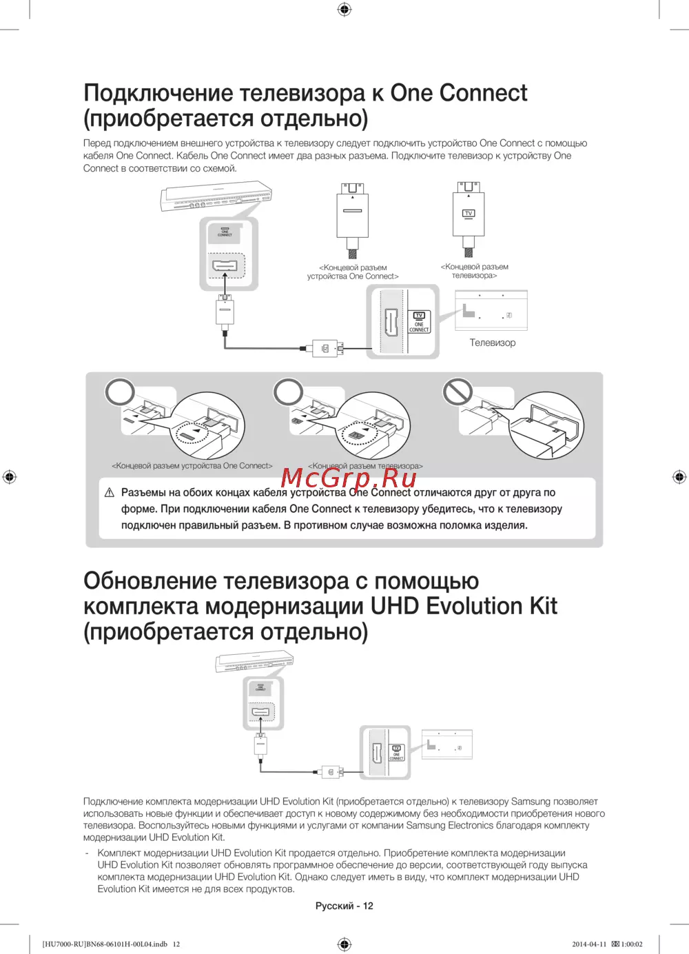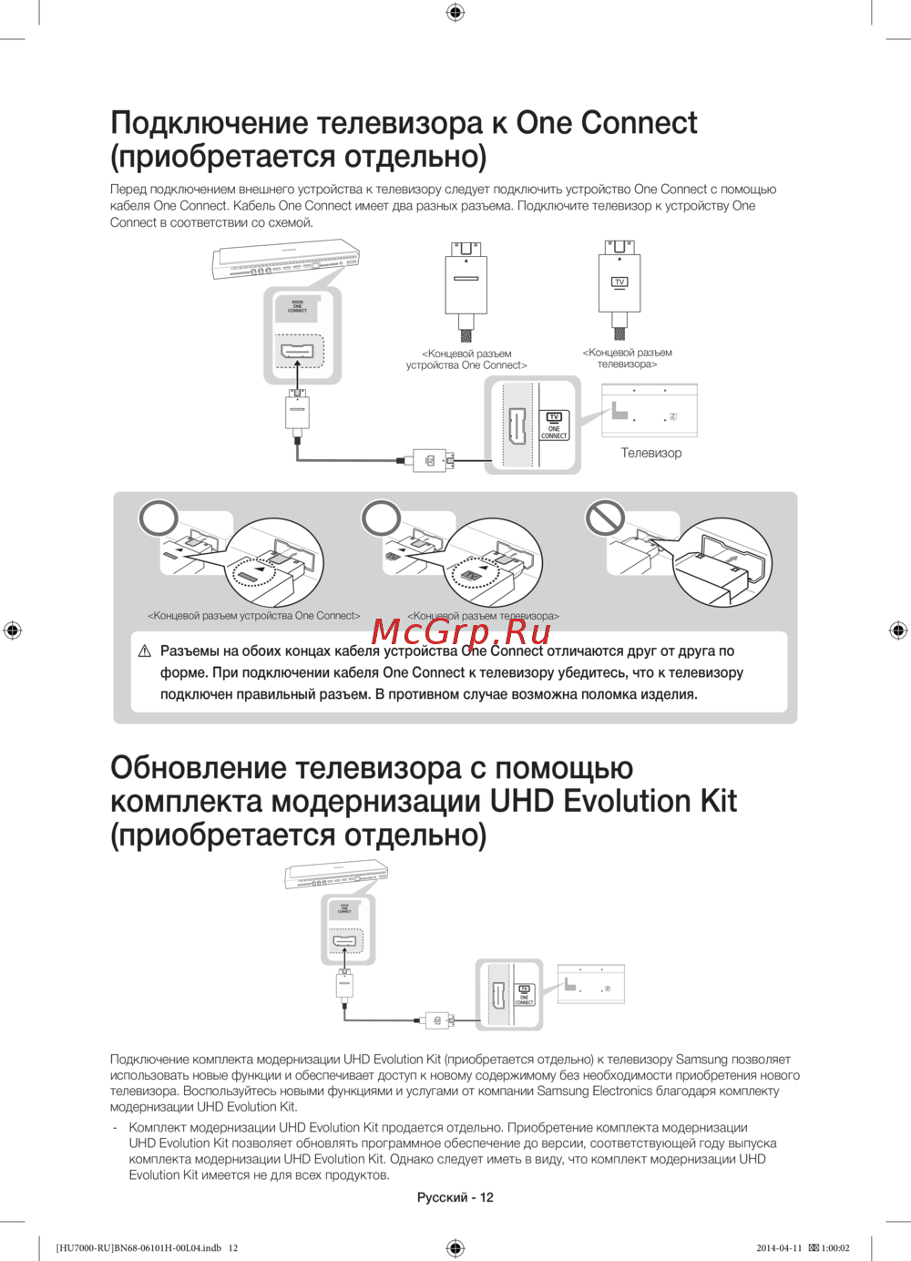 - Форме при подключении кабеля one connect к телевизору убедитесь что к телевизору p.12
