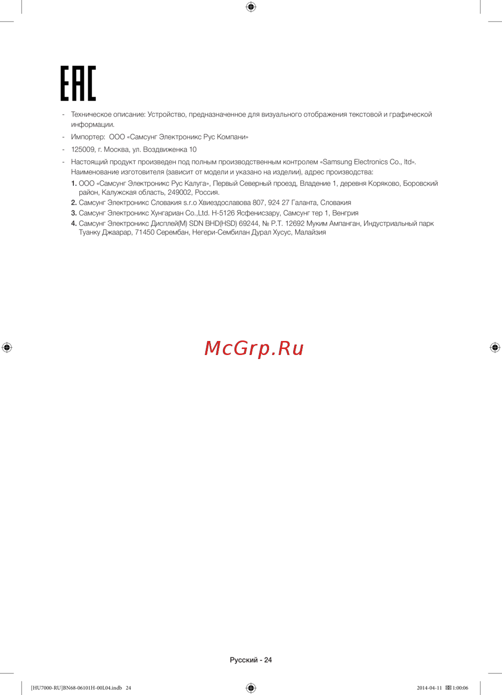 - Импортер: ООО «Самсунг Электроникс Рус Компани»