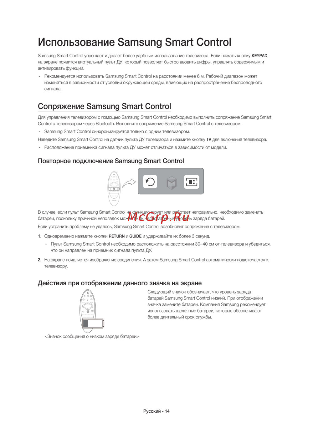 Для управления телевизором с помощью Samsung Smart Control необходимо выполнить сопряжение Samsung Smart