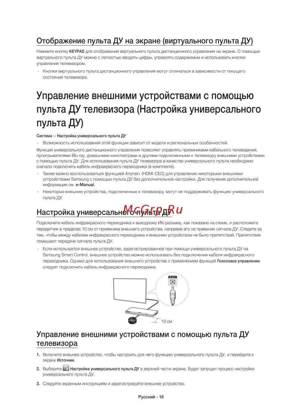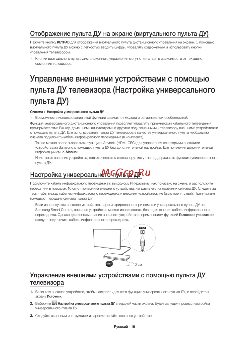 - Управление внешними устройствами с помощью пульта ду телевизора p.16