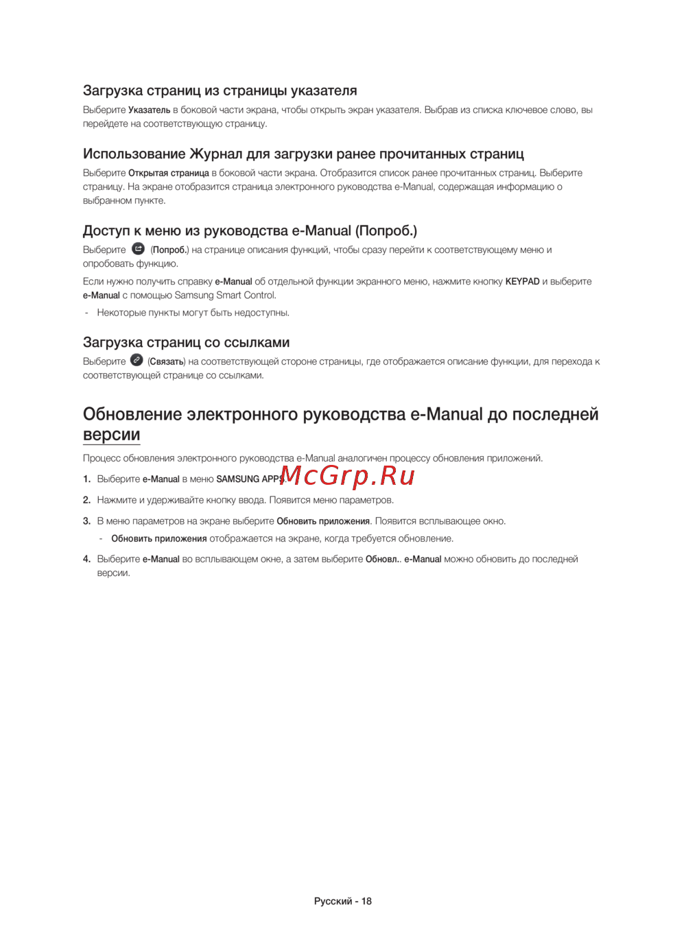 страницу. На экране отобразится страница электронного руководства e-Manual, содержащая информацию о