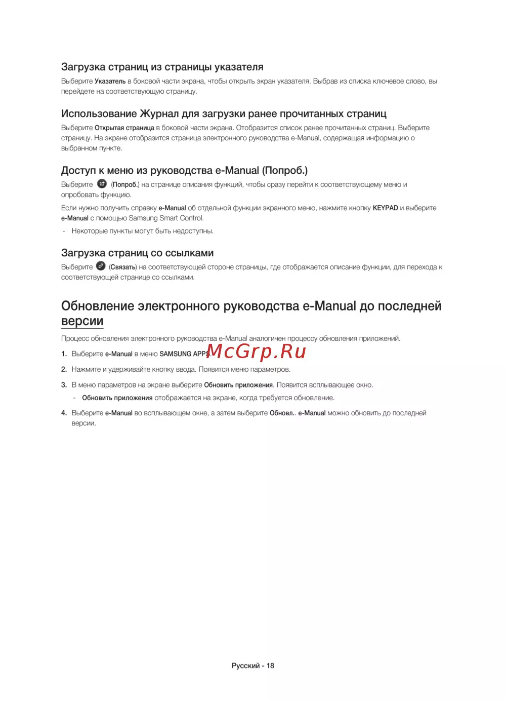 Процесс обновления электронного руководства e-Manual аналогичен процессу обновления приложений.