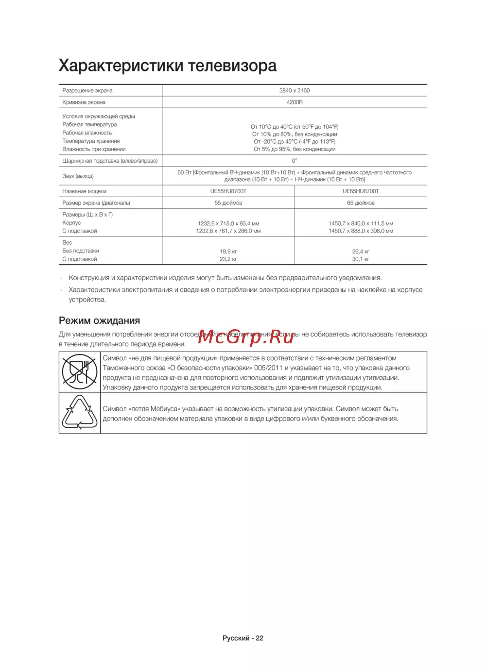 ![Samsung UE55HU8700T [22/25] Характеристики электропитания и сведения о потреблении электроэнергии приведены на наклейке на корпусе устройства](/views2/1107534/page22/bg16.png)
